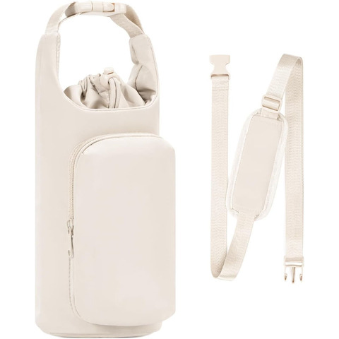 Borsa per il trasporto di bottiglie d'acqua borsa per cellulare 40 once di tazza piatta isolata tracolla regolabile Beige borraccia
